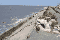 ![]() 圖1.中秋過後(農曆8月18日)彰化縣大城沿海滿潮時,因地層下陷,雖築海堤仍無法克服海水倒灌,居民損失慘重。 |