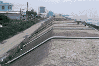 過度無節制的開發與人為的破壞平衡,導致台灣於先天地理地質條件優勢的幻滅、海浦地的消失、地層下陷與每逢颱風來襲或過境,常發生海水倒灌嚴重侵淹與潮害。居住條件的惡化,絕非海堤的加高加強所能補救。台灣地小人稠,每一寸土地都很珍貴,如何能防止地盤的下陷、大地的消失,已到了必須立即採取抑制措施的時候了。圖1.中秋過後(農曆8月18日)彰化縣大城沿海滿潮時,因地層下陷,雖築海堤仍無法克服海水倒灌,居民損失慘重。
