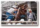 圖1.中國科學院古脊椎所工作人員與本館特展小組協力完成裝架任務 |