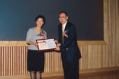 兩位得獎老師與貴賓及家屬共享榮耀 文/高慧芬.圖/張蕙敏 本館於12月17日由周館長親自頒獎表揚陳佳 文/台中市崇倫國中陳佳 能得到榮譽教師獎,最想感謝的是我的最佳製作人——媽媽,謝謝她把我生得有點聰明,有能力幫助他人,更感激她以樂觀進取的精神帶我們長大。她今年75歲,患有氣喘、骨質疏鬆和青光眼,曾因喘不過氣差點在醫院擺平,74歲做脊椎矯正手術,75歲開刀治療青光眼,問她怕不怕面對手術後不如預期的狀況?她說不做手術也是等著惡化,不如試試看總有一線希望,我要明天比今天更好。這樣的生活信念啟動我對教育工作的熱忱,教學20年仍樂於工作和勇於突破現況。我把教育當企業來經營,建立自己的品牌,堅持產品的品質、不斷開發新產品並且靠經驗分享來推銷產品,這樣的工作情境受惠最多的是我的孩子和學生。 孩子上小學後,先生忙於工作,無法隨侍在側,我覺得與其在家抱怨不如出來帶活動,除了自己的孩子也邀請同事的孩子參加,玩伴一多更增強他們參加活動的意願。通常在辦活動前,我都先試著和環境或展品對話,先感動自己才能激發別人的感覺。當我對著展品發呆,找不到一個切入點時,總有些貴人會適時出來點醒我,例如在鹿港龍山寺,我碰到黃錦津老先生,他引領我進入古建築的殿堂,因緣際會我才能幫科博館設計已出版的「梁柱傳奇」活動單和正在發展中的「梁柱正傳」。為了多認識古建築,我和女兒參加大地雜誌辦的「山西古建築之旅」。因氣候較乾燥,很多木構建築都保留下來,當我在唐代宏偉的建築裏抱著一根粗壯的柱子時,心中不斷的感謝它那麼盡責的撐住屋頂,好讓後代有機會感受唐代泱泱大國的風範。回來面對科博館仿唐代建築的木構展示,我終於有感覺了!希望「梁柱正傳」出版後,能和大家分享欣賞古建築的樂趣。 學校方面剛開始是利用假日帶任教的班級來參觀,後來推展到全校的學生,利用暑假星期三免費入館的機會,經由行政上排課和交通問題的支援,才得以成行。事先參考每年都會寄到學校的科博館教育通訊,設計各班的活動路線,將可利用的資源充分運用。每班都由導師帶隊,所以儘量配合導師的任教科目來規劃比較能吸引他跟班級學生。為了改善參觀的秩序、延後學生上麥當勞的時間,不妨培訓已通過推甄的學生為定點解說員,由學長來講,多了一份親切感,有導師跟秩序也比較好掌控。今年我把科老師的棒子交給學校的新秀——陳韻如老師,一方面是經驗的傳承,另一方面多了一位志同道合的夥伴。我們打算將科博館給崇倫國中一千人次免費入館的美意,由潛能開發班的學生優先享用,每次由兩位老師帶三十個學生,以遊戲尋寶的方式來進行參觀活動,他們或許不會寫活動單,但他們能感受老師的用心,有這份真情上的互動,對老師來說就是一種鼓舞,一種對學生永不放棄的承諾。 榮譽教師得獎感言文/台中市宜寧中學龔淑儀老師 我將科博館的資源有效運用在學校的教學活動上已有多年,因為科博館所展示的教材細緻而且豐富,學生可以根據不同的教學單元,找到他們需要的資料,建構他們的思維,尤其在參觀科博館的規劃過程中,學生有機會因分組而學習與其他同學的互動,培養團隊精神,學習國際水準的博物館應有的參觀態度,學習搜集資料的方法,並學習如何做書面報告。 當一份報告完成時,學生是必須就他的報告主題閱讀更多的相關資料,他就已經在成長,成長的速度有時比枯坐在教室學習更快。而我也從學生的資料中得到更多的教學材料。 不論報告是否完美,如果學生用心展現,那就是一份好的成績,我欣賞他們不同的才華,他們也建立了自信。 在各位教育先進面前,不敢輕言教育理念,所擁有的,只是堅持與創新,只要有機會,我就不放棄,我相信,只要播下一把種子,總會有些發芽,在科博館遊蕩的孩子是不會變壞的。 個人雖然得獎,但在我背後,其實還有許多理念相同的工作伙伴,很感謝宜寧中學教務、學務及總務所給予的行政支援。 得獎是鼓勵,也是壓力,希望不會辜負您們的託負。