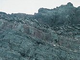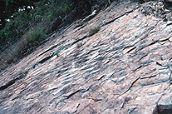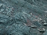 常言滄海桑田,玉山地層岩石中,多螺蚌貝類化石、生物活動遺跡之生痕化石與波浪影響所及產生之波痕漣漪等沉積構造(圖7~10),前為滄海沉積,後因板塊間的碰撞擠壓,造山運動抬升隆起,原百餘里寬的沉積海盆,褶皺起伏而成東北亞第一高峰,台灣十峻之首。玉山主要岩層稱玉山主峰層,由黑色板岩、變質砂岩與硬頁岩構成之褶皺山脈(圖11~13)。