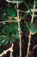 由於蘭嶼島地處於熱帶區系的邊陲,所以島上的植物種類,往往就是以那些分布於熱帶地區的家族為多,例如大戟科、楝科、桑科、桃金孃科、茜草科、山欖科、蕁麻科等植物。而往後幾期的簡訊,將會依照科別來分別介紹這些分布於蘭嶼的熱帶植物。 廣泛分布在全世界熱帶地區及部分溫帶地區的蕁麻科植物(Urticaceae Juss.),其家族成員約有52個屬1050種。植物體從草本(圖1)、灌木(圖2)到大喬木(圖3)都有,生活型多數是呈直立,也有匍匐或是藤蔓狀的種類;在植物體上多數有腺毛,但卻沒有白色乳汁的分泌(像榕樹一樣)。葉子主要是單葉,往往呈互生的螺旋狀排列(圖4)或是對生(圖5);通常都有拖葉(圖6)。蕁麻科植物的花序主要是由葉腋長出的聚繖花序;單一的花朵很小(圖7),都是整齊花,而且是風媒花;又蕁麻科植物多是雌雄異株或是雌雄同株,極少有雜性花的出現。雄性花通常具有4~5枚萼片及與萼片相同數目的雄蕊,心皮則是呈退化狀;雌性花的萼片僅有4枚,呈離生狀態或是部分癒合,而有些種類則是完全沒有萼片,花柱單一,子房下位且1室。蕁麻科植物的果實有瘦果、堅果及核果;種子具有一薄薄的油脂,其內包裹著直立型的胚胎。 依據「台灣植物誌」第二卷(1996年)記載,台灣的蕁麻科植物有21屬63種,而蘭嶼島上就分布有11屬16種之多。如果我們就「屬」的階級來看,在蘭嶼島分布有11個屬,就已經占全台灣的本科植物一半以上的屬了。不過依照「種」的數目來看,僅有「16」種分布在蘭嶼似乎並不是很多,但是如果我們仔細比對以後,發現在這16種裡面就有4種(25%)是台灣的特有種,且在這4個特有種中的紅頭咬人狗(Dendrocnide kotoensis (Hayata ex Yamam.) B.L. Shih & Y.P. Yang)及銳齒樓梯草(Elatostema acuteserratum B.L. Shih & Y.P. Yang)2種又是蘭嶼的特有種(亦即僅僅分布在蘭嶼);在剩下的12種裡面,又有5個種僅僅出現在蘭嶼及綠島。換句話說,台灣的蕁麻科植物雖然有63種,但是裡面有7個種類(11%)是我們必須前往蘭嶼才可以看得到的!若是我們將台灣的面積和蘭嶼作一比較,應該不難想像蕁麻科植物在蘭嶼的數量和它的重要性了。 由下一期開始,將陸續介紹一些在蘭嶼常見的蕁麻科植物。 更正:第165期大野牡丹一文中,圖6與圖7之圖、文應對調,特此更正。