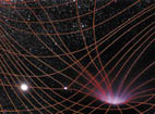1911年,愛因斯坦發表「廣義相對論」,闡述重力(就是牛頓所提的「萬有引力」)的本質是導因於物質的分布而彎曲了鄰近的「時間─空間」結構(圖9)。當另一物質在此凹陷彎曲的時空結構中運行時,它的行進行為、路徑正如被凹陷彎曲時空中的物質吸引般的偏折,甚至陷入其中。換言之,宇宙中像星體般的巨大質量,附近空間會形成巨大彎曲,當鄰近的物質接近而陷進彎曲的空間時,正可以解釋為什麼有一種稱為重力的力量會吸引鄰近的物質。物體在外太空中前進,除非進入行星或恆星的重力場所形成的時空彎曲範圍內,否則它將永遠循直線運行。物體以高速前進時,若受重力場影響,將會偏離原路徑。當物體以低速接近此星體時,將會被牽引成橢圓軌道而繞此星球運行。更慢的物體靠近時,則可能會直接撞擊這星體。