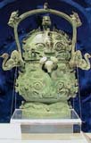 青銅器物涵蓋食器、樂器、兵器、禮器及酒器,包括了商代三牛首獸面紋尊、棡伯卣、西周神面卣(圖1)、王作左守鼎、戎生編鐘(圖2)、蟠螭紋鼓座、立兔尊等。其中西周神面卣是保利藝術博物館的「鎮館之寶」,是中國目前所發現造型最為奇特的銅卣之一。而具銘154字、八件一套的「戎生編鐘」,是保利藝術博物館收藏的另一套「國之重器」,這套編鐘經過調音、實際使用過,無論對研究音樂發展史或當時社會經濟和歷史地理都是重要資料。