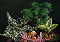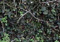 愛玉雖然主要以採收愛玉子供作愛玉凍,其實它和薜荔也是很好的綠化植物;因為蔓性的生活型,一般都是當成吊盆栽培(圖9),或是讓它攀爬於壁面當爬牆植物或綠籬。因為有耐陰的習性,所以亦可當成室內植物栽培,薜荔較適於低海拔栽植而愛玉則適於中海拔,因植株成長快速及易於造型,也常被利用於組合盆栽上。薜荔葉互生,長橢圓形或倒卵形,葉色因品種而不同,除了常見的綠色外,還有白色斑葉品種,園藝上稱為雪荔(圖10)。在原生環境中,薜荔常附著在樹幹上,向上攀爬生長,葉子會越長越大(圖11、12),植株長成灌木狀,並會結果。它的果實跟愛玉子一樣,可以搓揉出果膠製成愛玉冰,但因果膠含量不多,所以較不被重視。若有空間,種些愛玉或薜荔,運氣好的話就有愛玉子可收成,否則觀察其生長及與榕果小蜂的互動也是很有趣的喔!