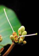 在蘭嶼的海邊,尤其是東清村到雙獅岩附近,您或許會看到一種葉子大大的小樹,有點像上一期簡訊介紹的「欖仁舅」,不過葉子顏色淺綠,中間也沒有苞片狀物,若是有花則更好區別,除了每一朵花都比較大之外,更有著淡淡的花香。這就是本期的主角─葛塔德木(圖1)。