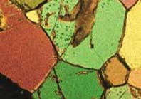 section),然後放在偏光顯微鏡下觀察其形態、構造及礦物組成等性質,並可利用礦物的光學特性來幫助礦物類別的鑑定。