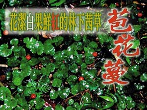 | 匍匐性的苞花蔓(Geophila herbacea (Jacq.) O. Ktze.)是一種多年生的草本植物,在分類學上是屬於全世界僅20種且主要分布在熱帶地區的苞花蔓屬(或稱作「愛地草」屬)(Geophila