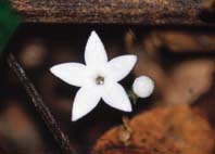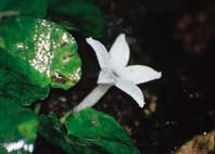 4.2公分長,成對的苞片則為線形且內外都有毛。裂片線形披針狀的花萼一般5裂,外面也被有毛茸;長漏斗狀的花冠白色(圖4),(4-)5裂,外面略被毛茸,內部則是稀疏的毛茸,直到喉部(花冠變窄的部位)以下才完全光滑無毛;雄蕊多和花冠裂片同數目,且長在花冠的中央,花絲很短且呈絲狀,其上接著2縱向開裂的線形花藥;花柱約